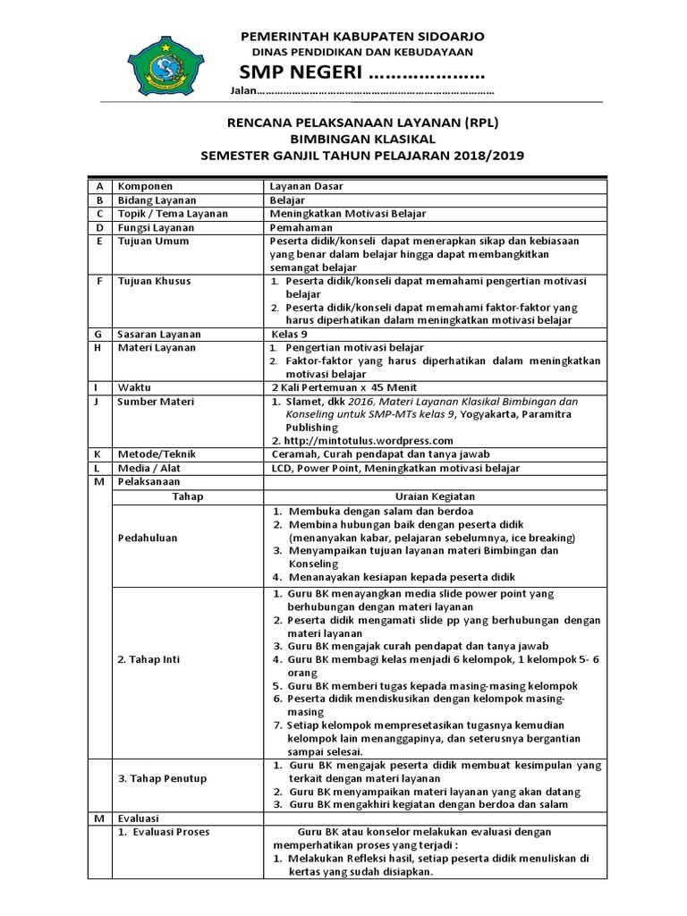 Rpl Bimbingan Klasikal Motivasi Belajar Pdf